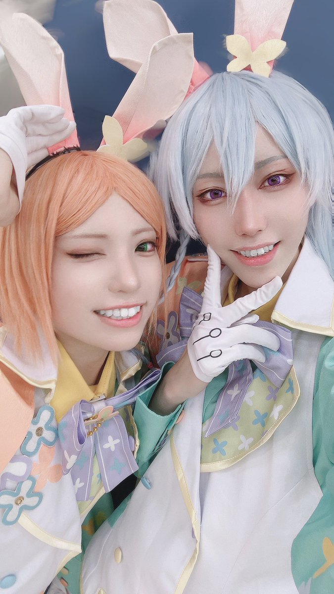 初テデシでかっ飛ばしてきました🚙💨 頭に花が生えた巽とHiMERUとってもシュール… ズン太さん連れ回してすみませんでした!楽しい1日でした♪ 🤫@Gokiogi5025 #コスフェスTDC