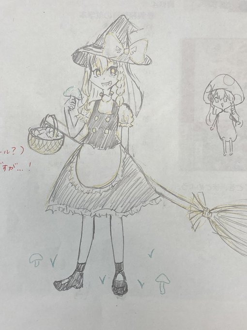 4 42 今日の落書き 魔理沙はキノコ好きってイメージあるよね 服と髪型違うかもしれない #イラスト #アメーバの落書き展 22/10/07 16:18