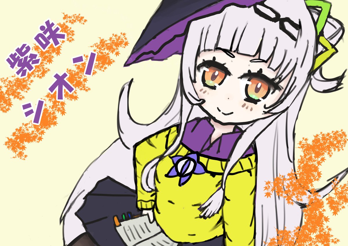 #シオンの書物 もうすぐ秋なので、 秋風にしてみました。 シオンちゃんの体調が早く治りますように。♪ヽ(´▽`)/ (上着なしバージョンはリプ欄に記載)