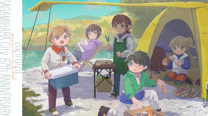 今日の絵〜〜!! 相模原ホームタウン3市1町でお祝いイラスト🥳 市町の職員さんたちがお揃いのTシャツ着て応援してたので! 本当に本当におめでとう🎊 #kanagahour #sagamisaga