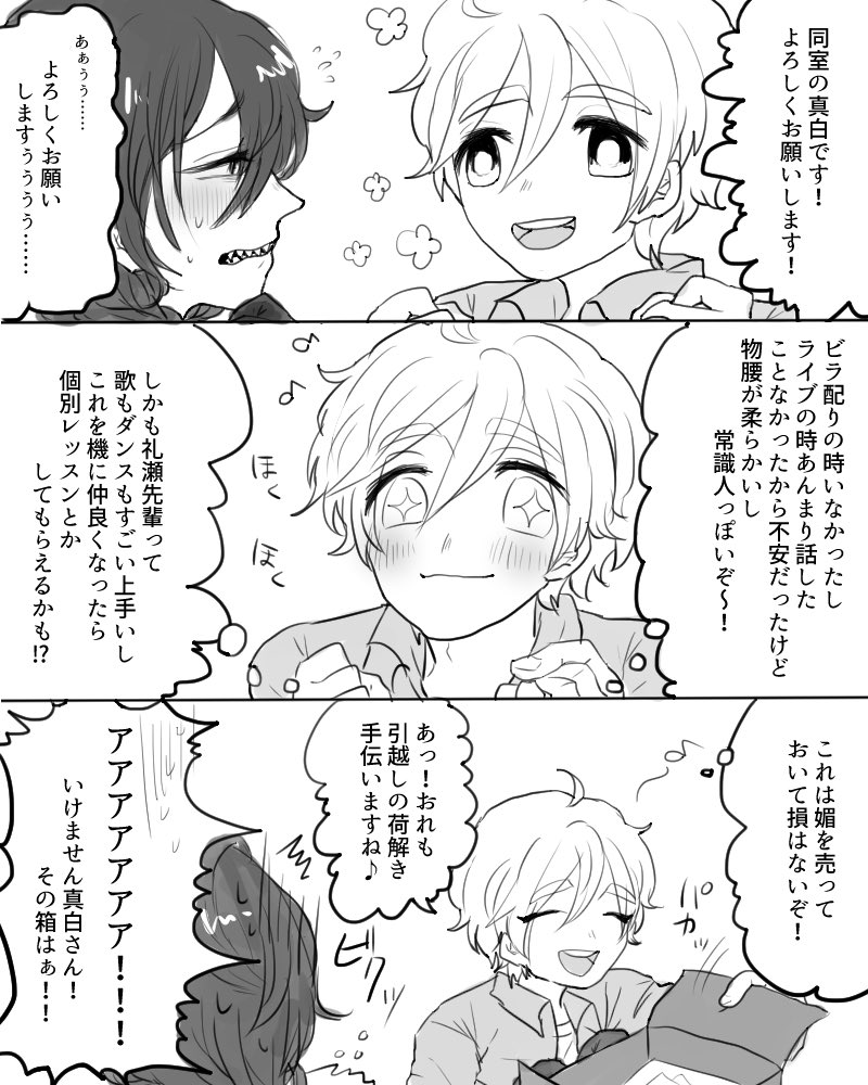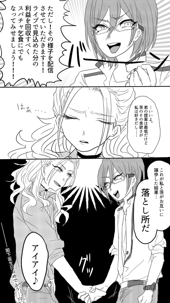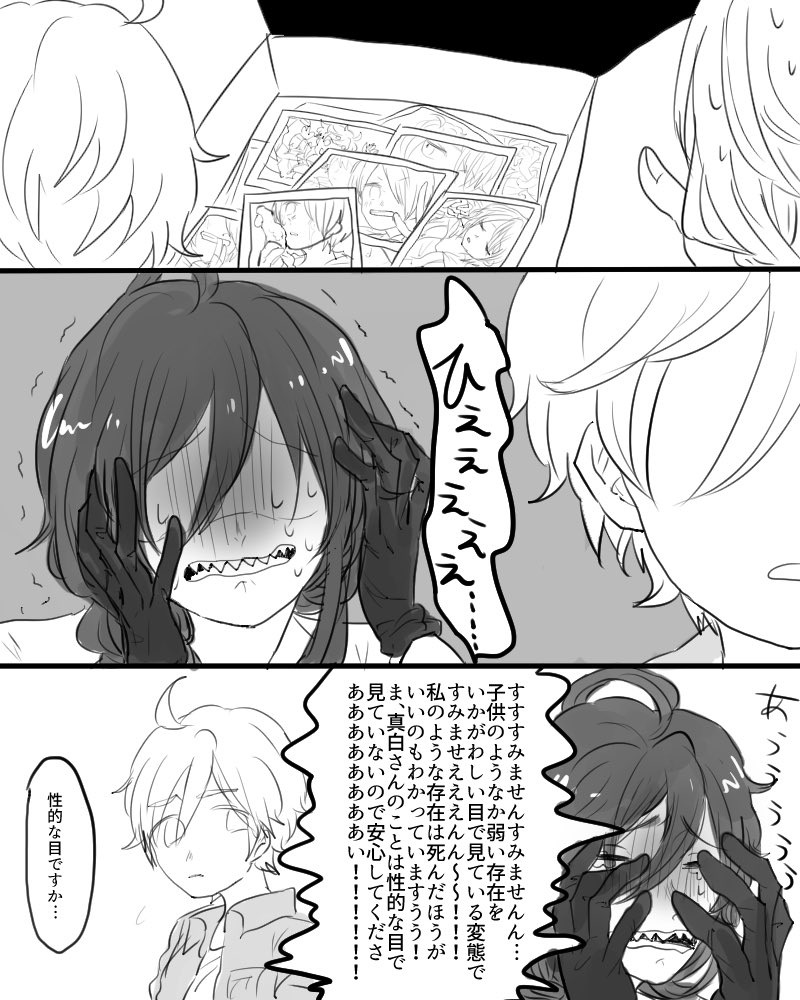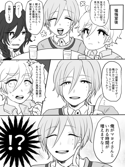 同室情報だけ出た時に勢いで描いた友也とマヨイさんの漫画支部にアップしてあるんですけど気に入ってるのでここにものせておきます。 ほぼ初描きだったせいでマヨさんのホクロ全コマ描いてないですな