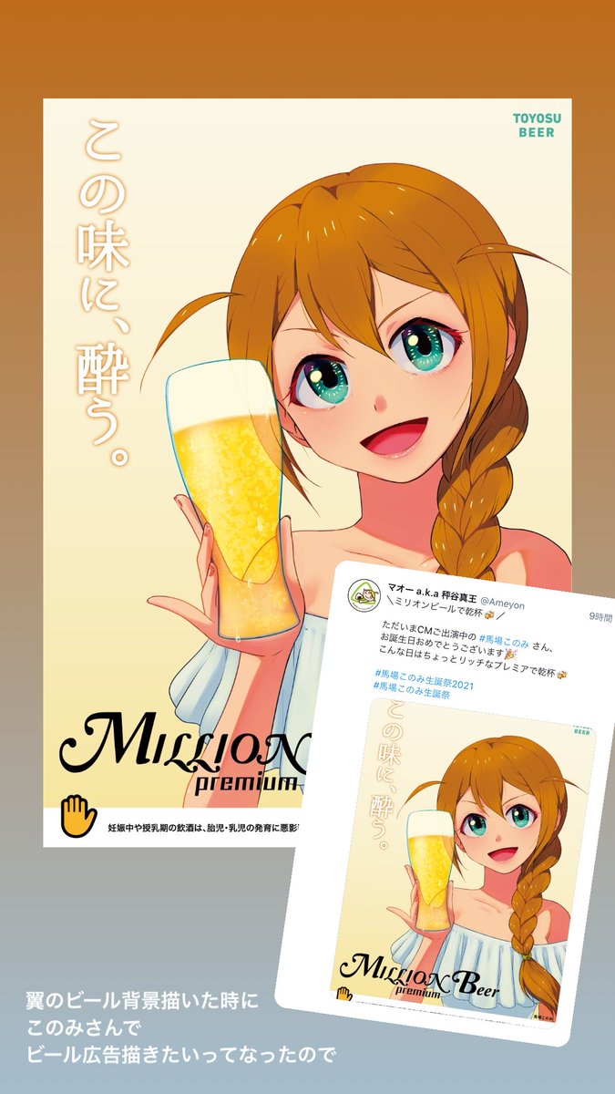 \ミリオンビールで乾杯🍻/ ただいまCMご出演中の #馬場このみ さん、 お誕生日おめでとうございます🎉 こんな日はちょっとリッチなプレミアで乾杯🍻 #馬場このみ生誕祭2021 #馬場このみ生誕祭