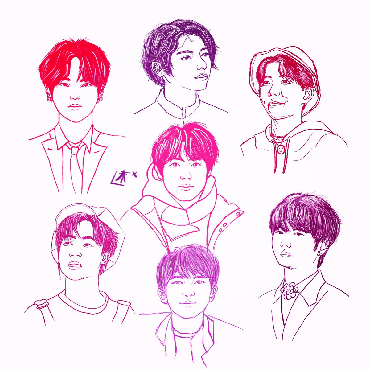 Filling a sheet with small BTS portrait doodles... #kpop #kpopfanart #bts #btsfanart #jiminfanart #lineart #fanartist #comicart #ink #pencil #illustrator #design #illustration #그림 #dessin #dibujos #スケッチ #sketch #drawing #portraitsketch #fanart #comic #anime #manga