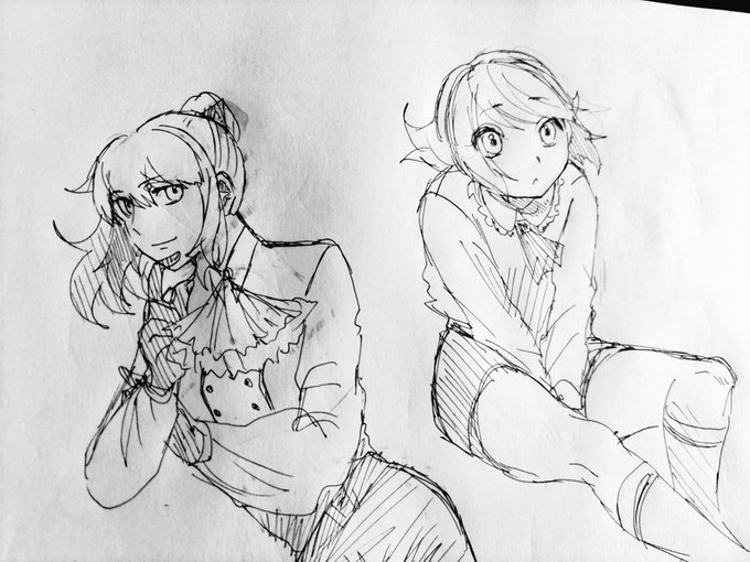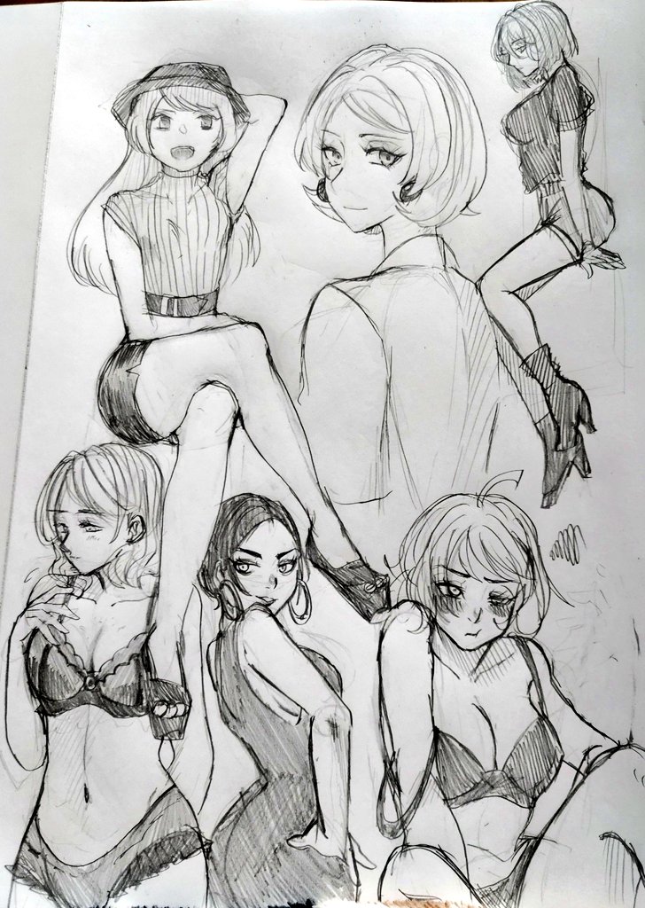 #女の子イラスト #落書き #アナログイラスト #シャーペンイラスト お洒落な女の子たち描くぞー!てなったのに気付いたら大好きなおっπばかり描いてました、はい。