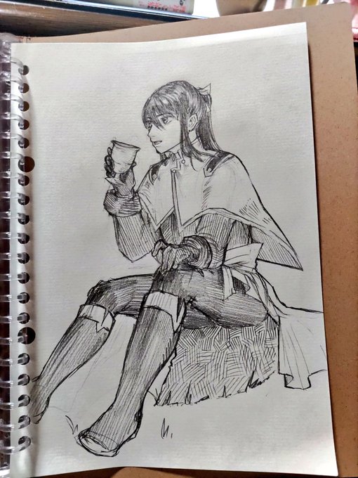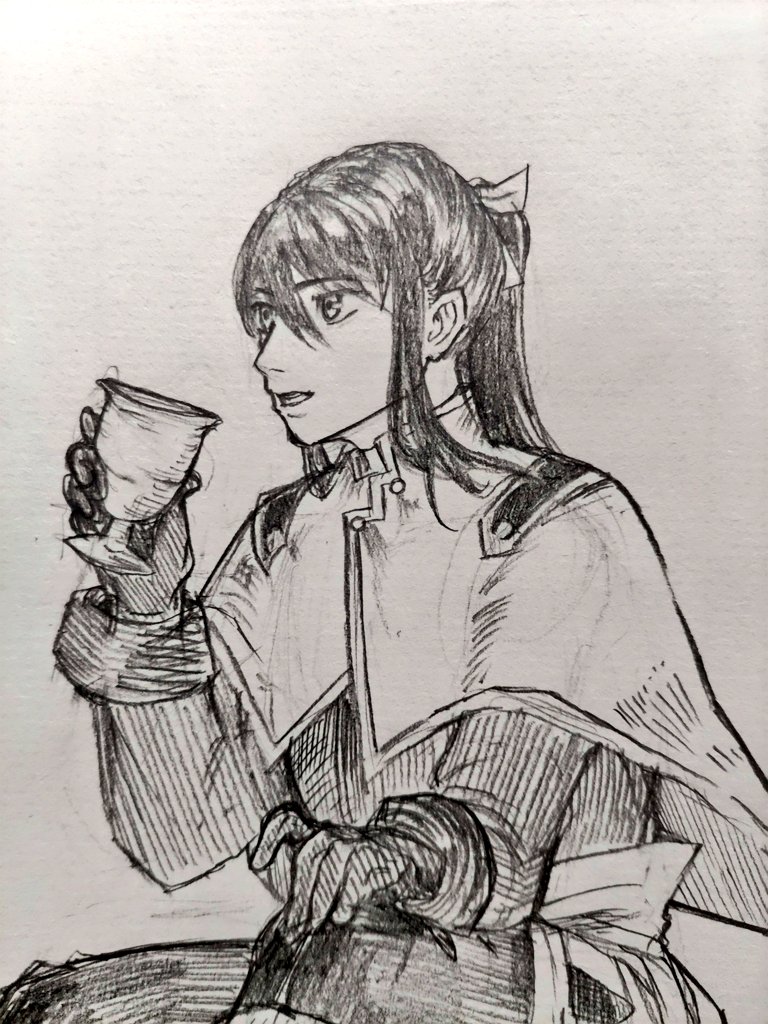 #オリキャラ #アナログイラスト #創作 #シャーペンイラスト 久々に描いたレイン お酒飲んで語らってるイメージ