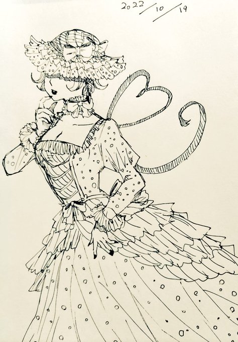 3 13 #黒猫娘スペース #ボールペンイラスト #落書き お題【自由】 ちょっと不思議な貴婦人を描きました🎀 22/10/19 22:53