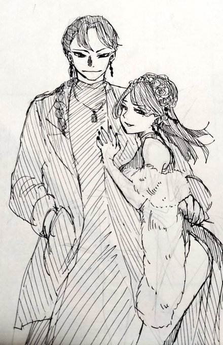 1 7 #アナログイラスト #ボールペンイラスト チャイナなふたり マフィアのボスとオンナ(愛人)でもいいし、 裏の仕事をする兄妹でもいい 男女ともに物騒な二人組は最高に好き 22/10/20 23:06