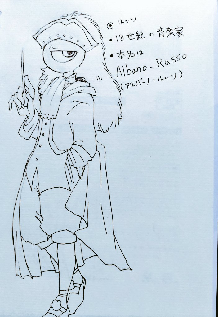 #落書き ルッソの過去 生前(人外になる前)は18世紀の名も無き音楽家の一人だった。 芽が出ず音楽だけでは食べていけない。借金が増え、周りの音楽家たちがどんどん出世し、妻に負担をかけてしまいどんどん病んでしまう 人外になってからは生前の自身のことをよく覚えていない