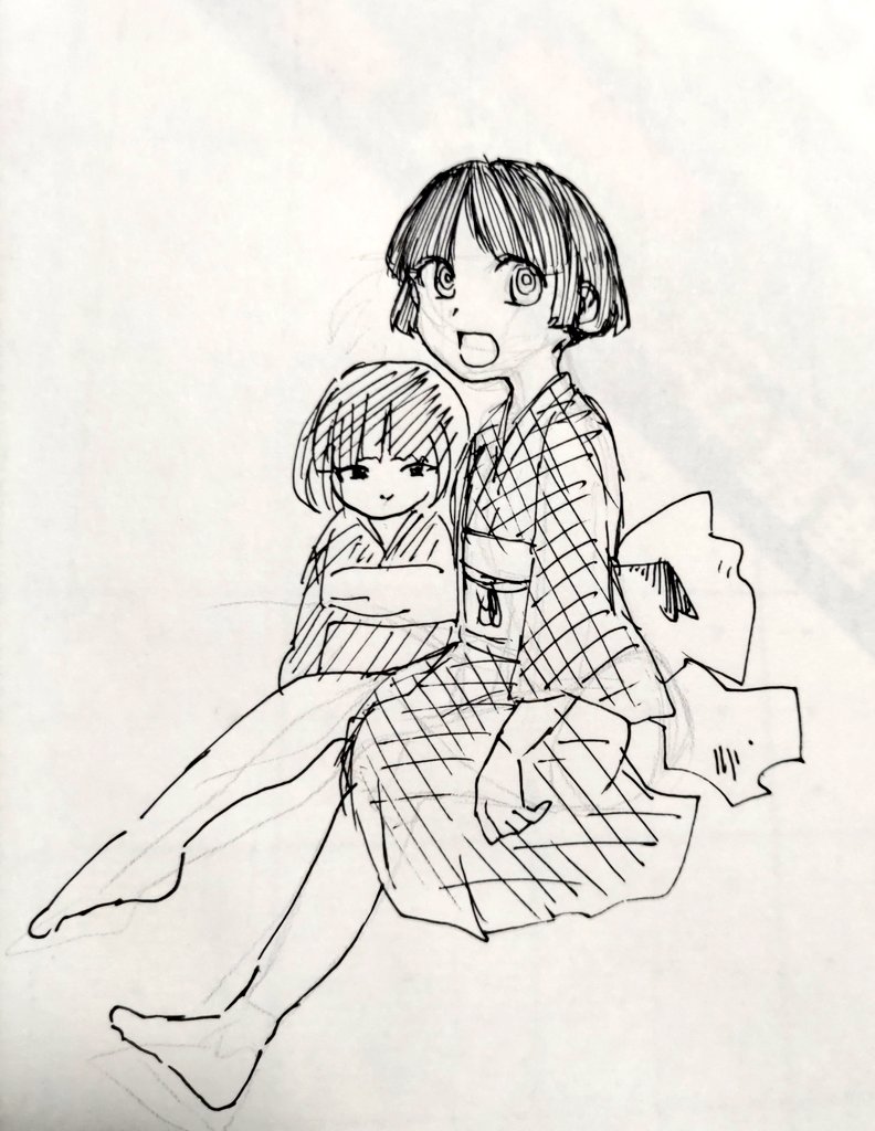 #黒猫娘スペース #落書き #ボールペン お題【妖怪】 座敷童子は果たして妖怪なのか、それとも神様なのか個人的に気になります(●´ω`●) ボロい着物のイメージだけど、お祭りにちっちゃい子が着る浴衣(帯が金魚みたいにひらひらなやつ)もかわいいと思います✨