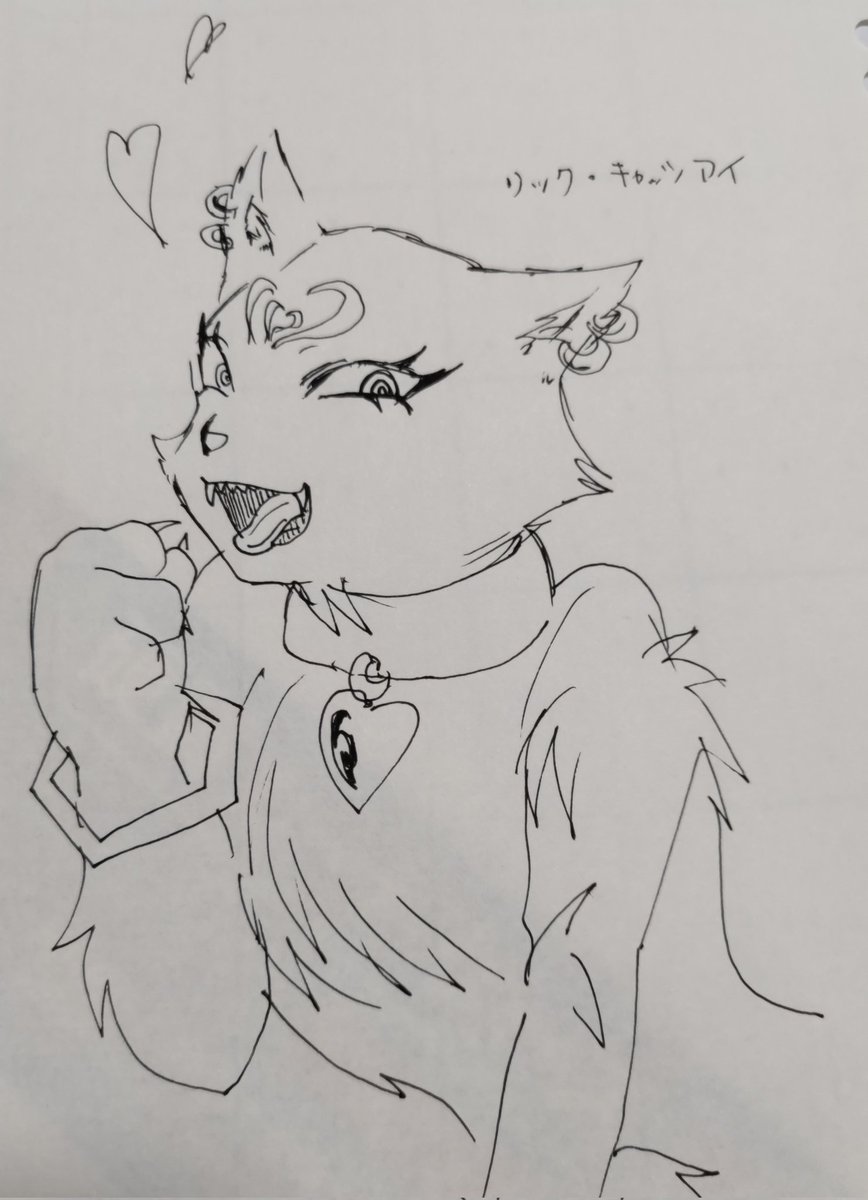 2 7 #黒猫娘スペース #落書き #ボールペン #ケモノ お題【ケモノ】 リック・キャッツアイ アングラ系キャバレーのNo.1ダンサーにして男娼 にゃんにゃんこー!! 22/11/26 22:58