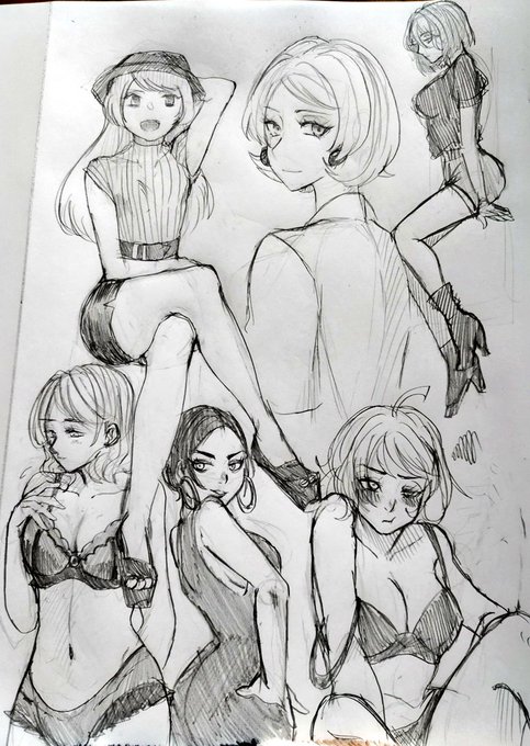 1 4 #女の子イラスト #落書き #アナログイラスト #シャーペンイラスト お洒落な女の子たち描くぞー!てなったのに気付いたら大好きなおっπばかり描いてました、はい。 23/01/05 00:02