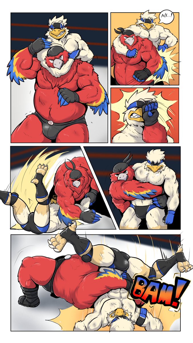 Here's a closer look at the comic panels of Mad Moe McCaw and @BillMund's pigeon powerhouse Wingman belting each other around the ring down under. Hearty cheers once again to Bill for capturing their punch-up in such fine style! #MadMoeMcCaw