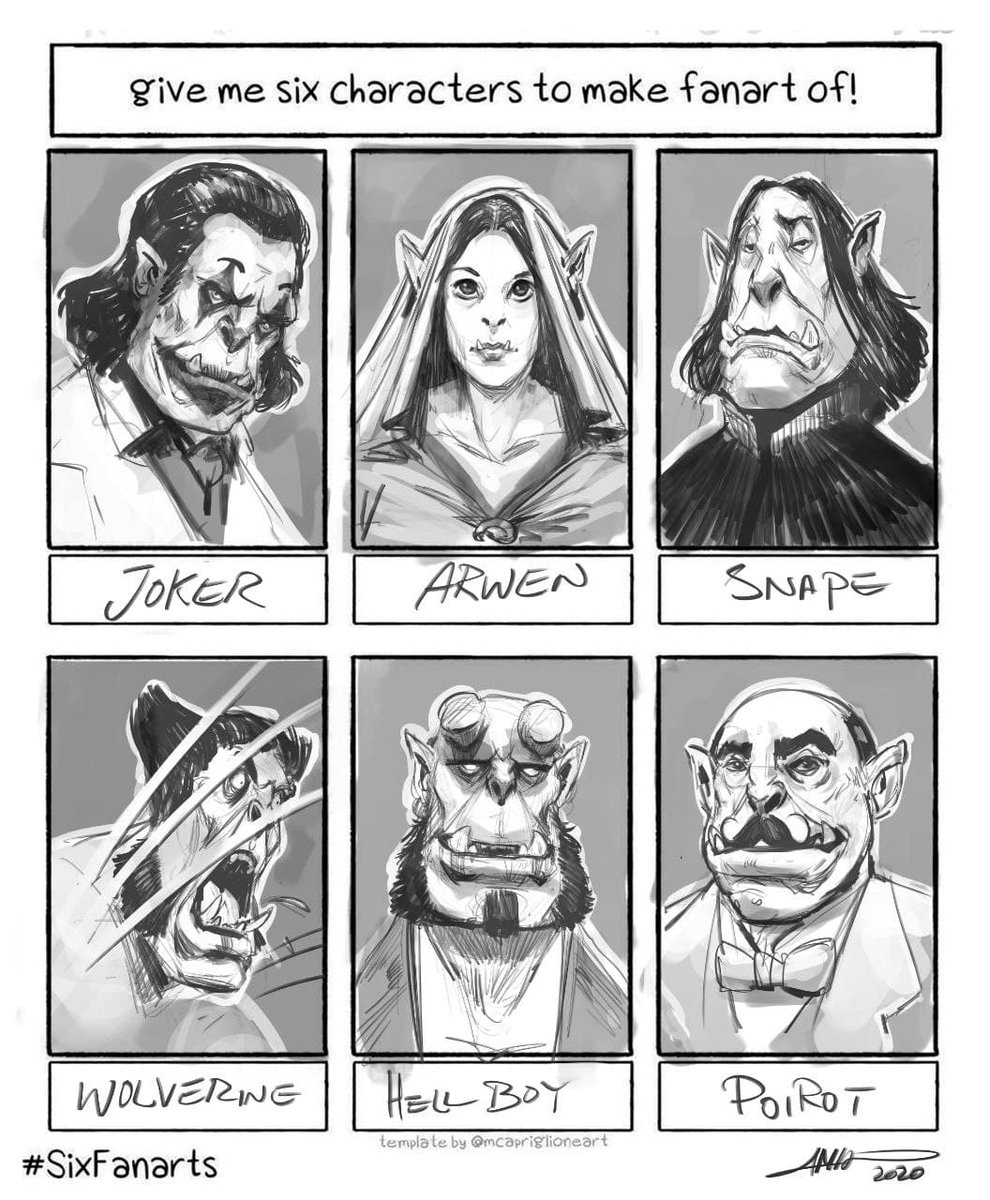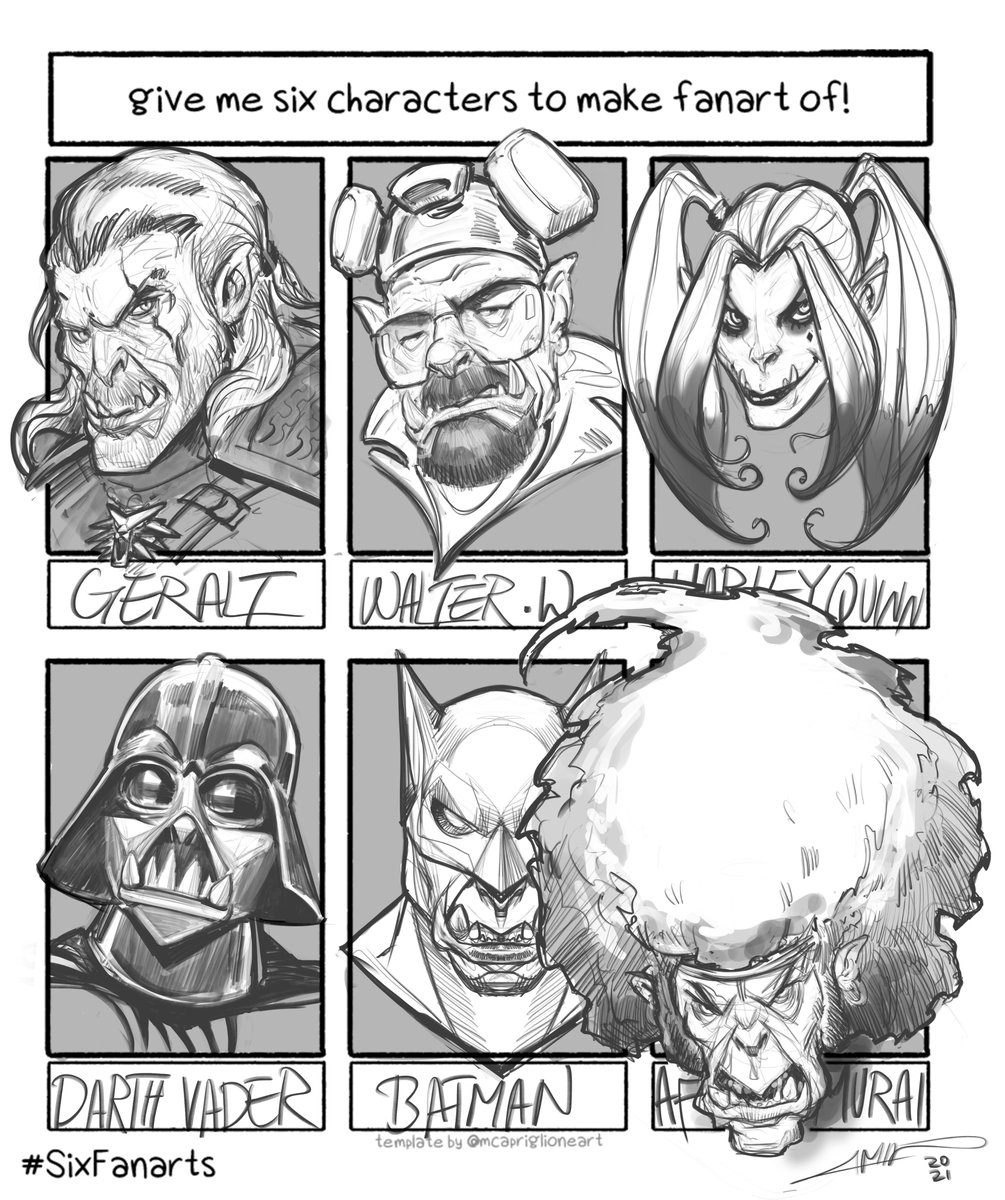 🔸Geralt, Walter White, Harley Quinn, Darth Vader, Batman, Afro Samurai🔸 Instagram's #Sixfanarts challenge, No.2, again Orcish and again in Warcraft style! which one is your favorite? #characterdesign #conceptart #Drawing #warcraft #orc #JusticeLeague #batman #Starwars