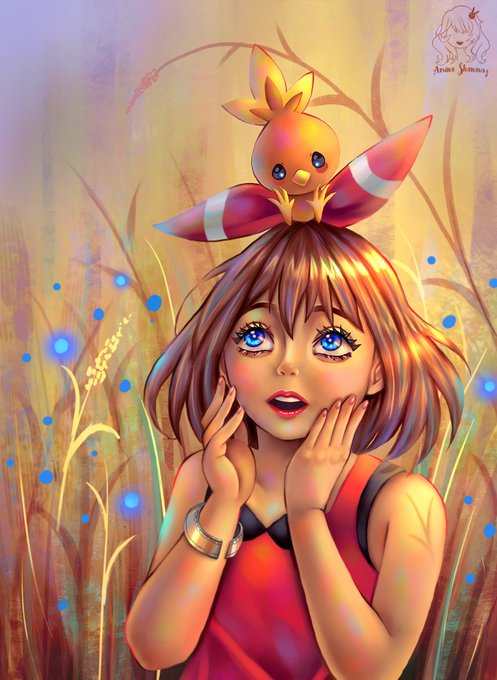 I made fanart of May and Torchic from Pokemon ! This is a redraw ,the original one was done in 2021(in the comments) I think I have improved 🥹✨ RTs are appreciated #art #artistsontwitter #pokemon #digitalart