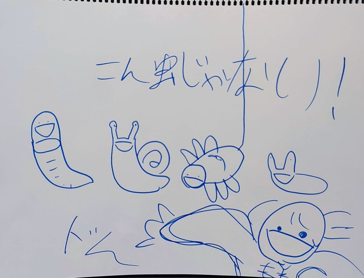 1 35 「こん虫じゃない!」 長女作 👧言っておくけど ミミズもカタツムリ🐌もクモ🕷もナメクジも昆虫ではないからね!と力説しておりました😄 虫→哺乳類・魚類・鳥類・貝類以外の小さな動物の総称のこと 昆虫→動物「界」節足動物「門」昆虫「綱」に分類される生物を総称したものだそうです👧 #ゆるい絵 23/07/06 22:51