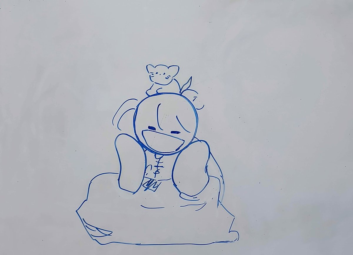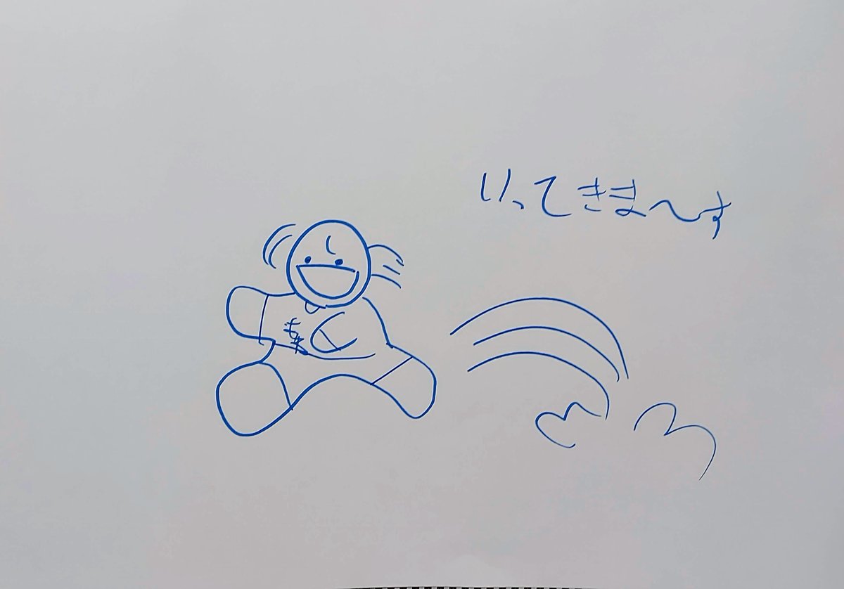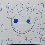 「まったりする時間はいいよね」 長女作 久々のホワイトボード 頭の上のイマジナリー的な🐱です👧 #ゆるい絵 #ホワイドボードイラスト