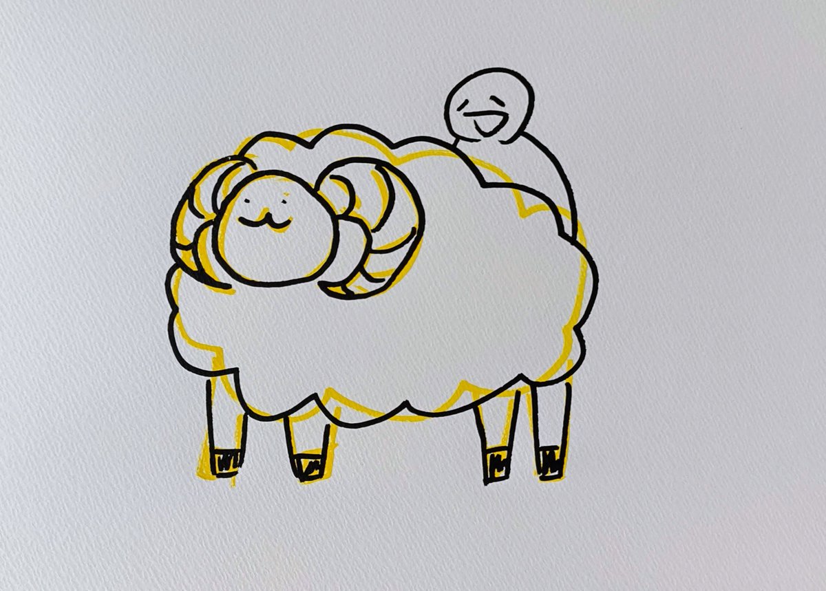 1 29 『ひつじの日』 次女作 6/6はひつじの日🐑 後ろにいるパーノウの位置が 足はひつじってわかっているはずなのに なんか足長く感じてしまう😆 #ゆるい絵 #今日は何の日 23/06/06 22:54