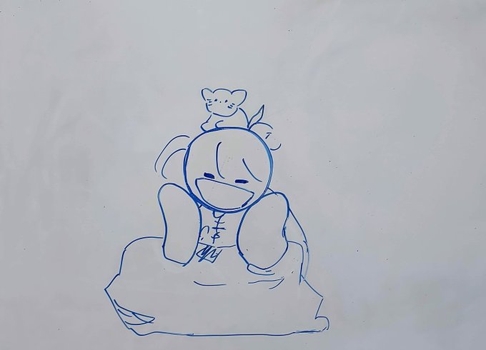 1 24 「まったりする時間はいいよね」 長女作 久々のホワイトボード 頭の上のイマジナリー的な🐱です👧 #ゆるい絵 #ホワイドボードイラスト 23/06/06 23:02