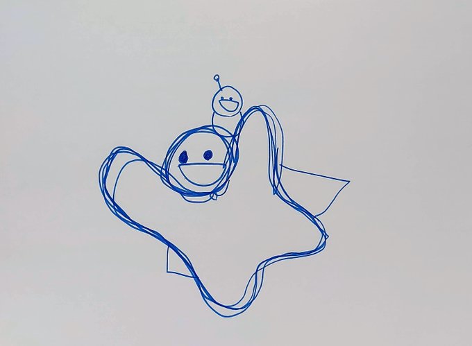 2 92 「スーパーマッソ」 長女作 マッソって😅 ちなみに上の小さい子は相棒らしいです☺️ #ゆるい絵 #落書き 23/05/27 23:32