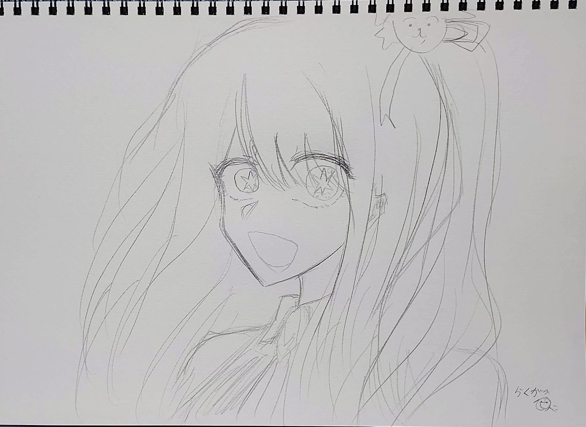 【推しの子】✨星野アイちゃん👧 長女作 こちらは模写した分だそうです✏ ん?右下にあね発見! #らくがき #鉛筆画
