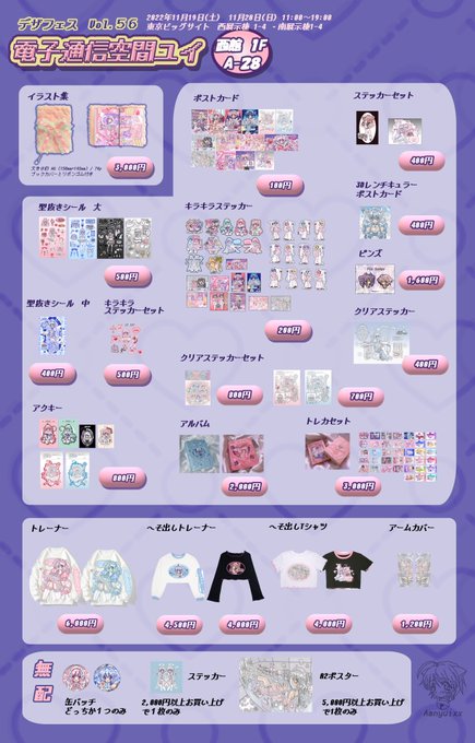 【2023/5/5 コミティア144 お品書き】 東3ホール スペース「E11b」 電子通信空間ユイ 商品の写真や他の詳細などは日にち分けて続々ツリーに載せる予定! 無配のトレカだけでも是非どうぞ~ 3枚目のポスター2枚も先着順で販売します よろしくね #コミティア144 #コミティアお品書き #COMITIA144