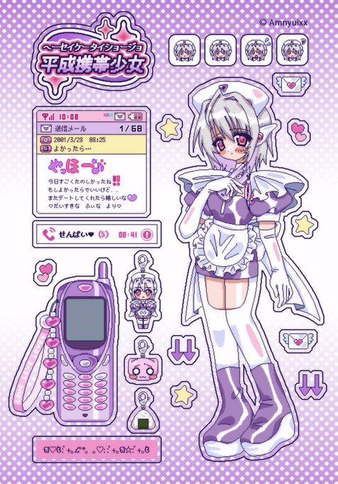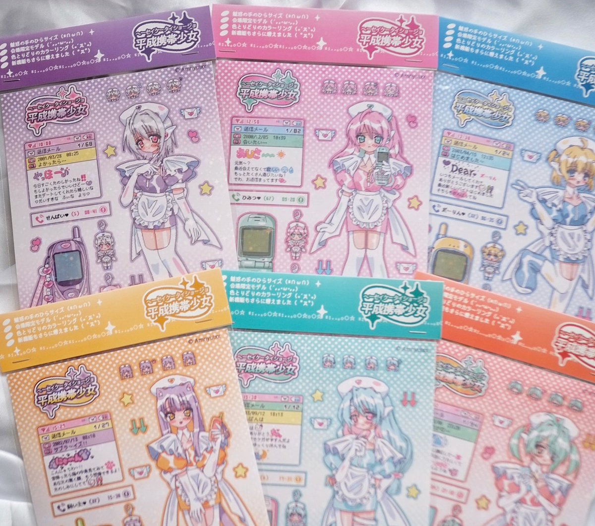 平成携帯少女の新グッズをネットショップに載せました〜! ・イラスト集 ・アクキー 6種 ・型抜きシール 6種 ・ホログラム型抜きシール amnyuixx.theshop.jp よろしくね