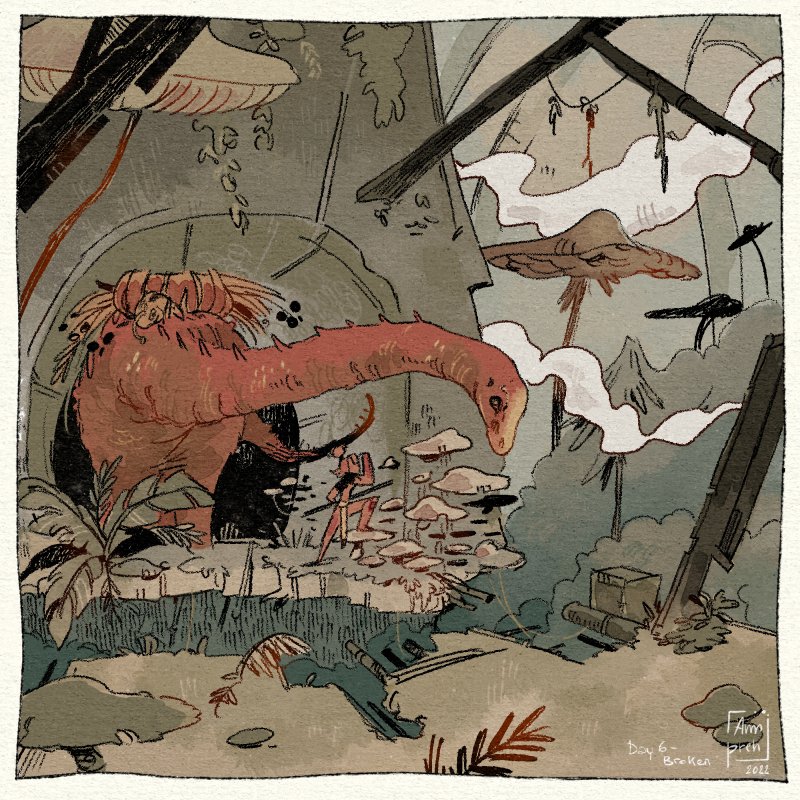#ARKtober , Aberration !! 🦕 Kahuere has not yet said her last word! Day 5 - Taming Day 6 - Broken 🫒 #Inktober #inktoberlist #ARKsurvivalevolved #playARK