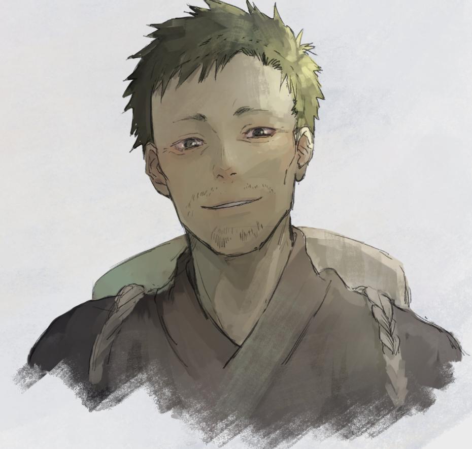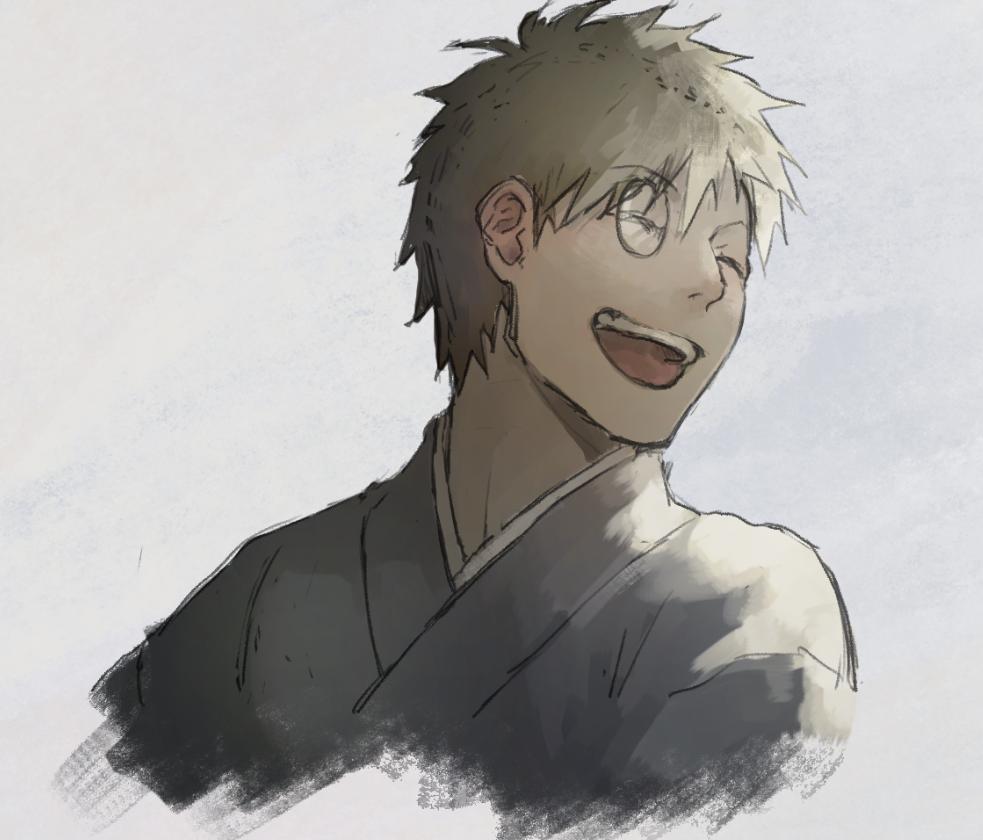 #リプきたキャラの顔だけ描く 蟲師より ギンコ 化野 たま スグロ 蟲師の人たちってあんまり笑顔~って感じの表情しないので、このくらい笑うときもあってほしいなって希望