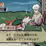 ⚠️クロスオーバー注意⚠️ 大神×蟲師 ゲーム画面つくるのめっちゃ楽しかったです ギンコのたばこの煙が若干ヒトダマに見えるのが心残り
