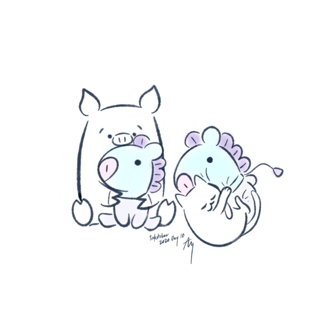 #inktober2020 Day10: #Hope Our Hope. Our Mang. 🐱🐷Stay tuned #inktober #hkgirl #drawing #illustration #digitalart #procreate #challenge #character #香港插畫 #イラスト #ink #animals #piggy #cat #fish #toy #play #doll #BT21 #Mang #希望 #BTS #JHope #aay