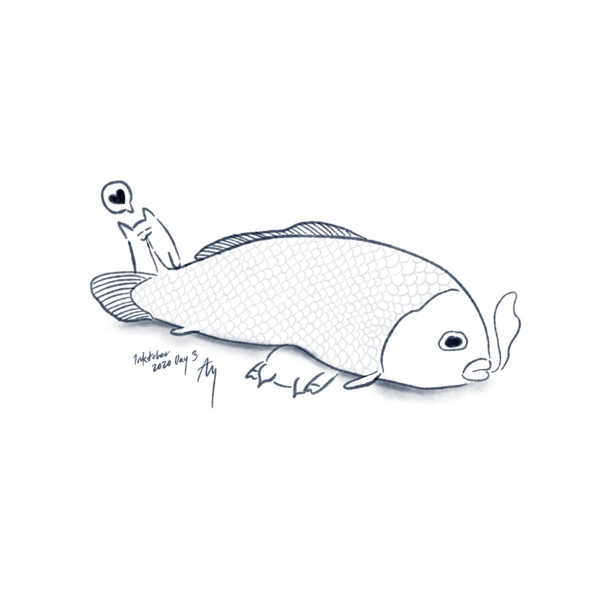 #inktober2020 Day3: #Bulky 🐱🐷Stay tuned #inktober #hkig #hkgirl #drawing #illustration #digitalart #procreate #challenge #character #香港插畫 #イラスト #ink #piggy #cat #fish #aay