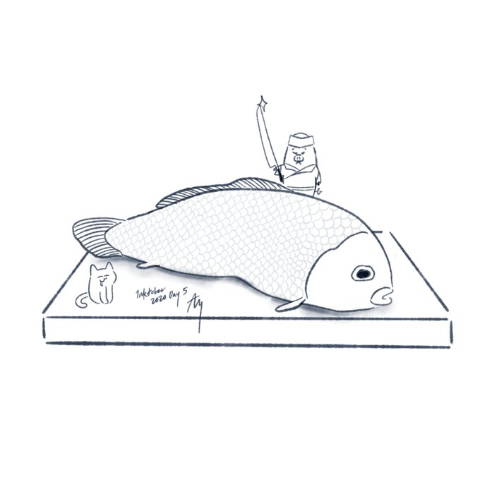 #inktober2020 Day5: #Blade 🐱🐷Stay tuned #inktober #hkgirl #drawing #illustration #digitalart #procreate #challenge #character #香港插畫 #イラスト #ink #piggy #cat #fish #sushi #yummy #aay