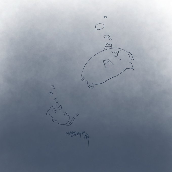 #inktober2020 Day19: #Dizzy 🐱🐷Stay tuned #inktober #hkgirl #drawing #illustration #digitalart #procreate #challenge #character #香港插畫 #イラスト #ink #animals #piggy #cat #sea #underwater #aay