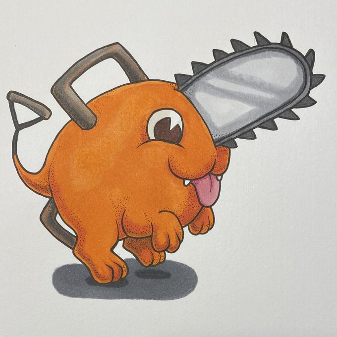 Happy #Inktober2022 Day 25! Here’s a happy Pochita from the anime “Chainsaw Man.” Such a useful pet! #chainsawman #pochita #anime #cooic #microm #drawing