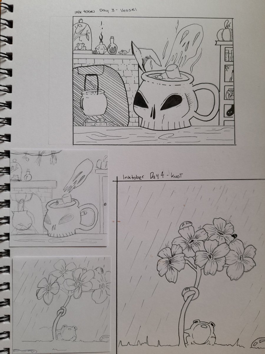 0 5 Inktober prompts day 3 and 4: vessel and knot! Day 1 & 2 were a disaster so maybe later #inktober #inktober2021 21/10/12 18:24