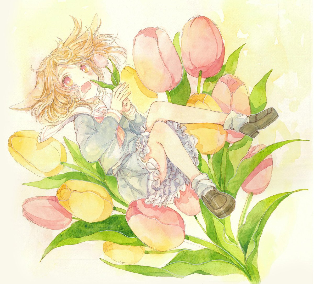 #作品を載せて自分の作品を知ってもらおう お花と女の子とうさみみを描くのが好き🐰✨ チューリップが特に好きでよく描きます🌷 優しくてかわいいイラストをたくさん増やしていきたいです〜!