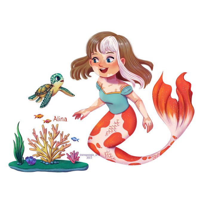 2 4 Alina✨🧡#MermaidVibes #IllustrationMagic #OceanAdventures #KidLitArt #illustrationartists #fantasy #bookillustration #vitiligo 23/06/29 10:31