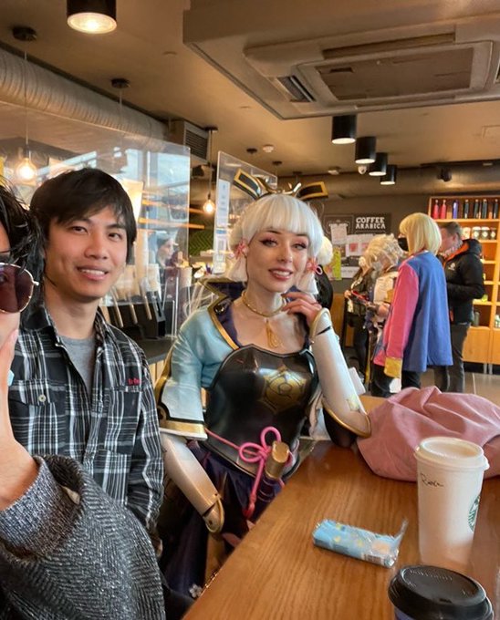 He randomly came up to me at a con and told me he liked my Ayaka cosplay, we ended up speaking for half an hour about genshin Back in the same starbucks at the same con a year later, now officially dating 💕 twitter.com/inaribriana/st…