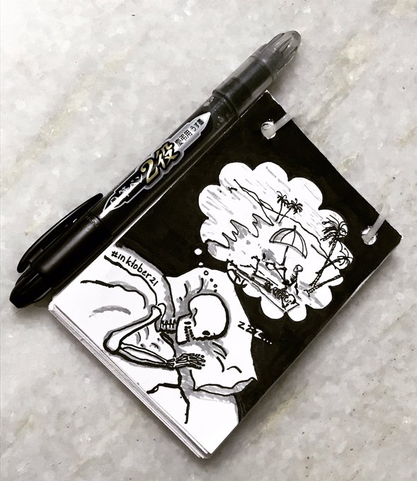 Dreaming of a vacation! Sigh... #inktobersleep #inktiberday21 #inktober2020 #inktober #sleep #skeleton