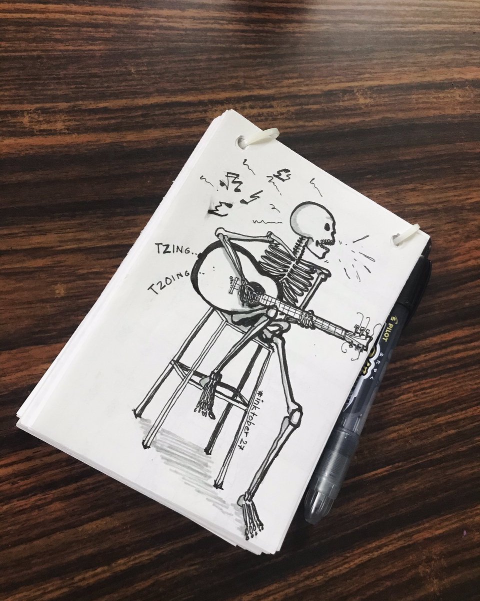 Yogesh plays his guitar and sings... well, he tries... #inktobermusic #inktober2020 #inktoberday27 #music #inktober #skeleton