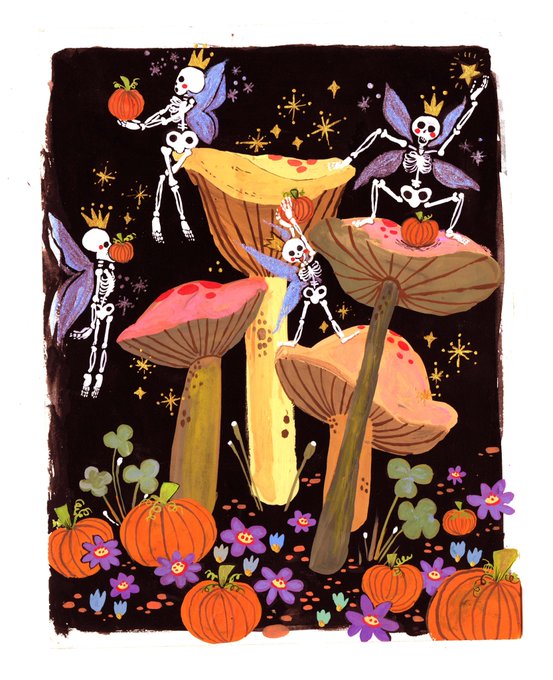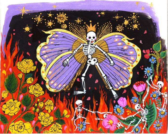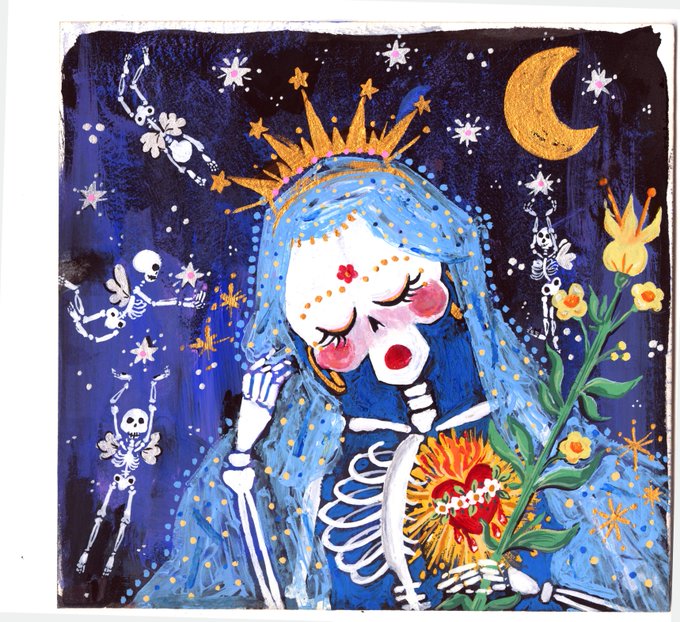 I'm going to be doing a series of these skeleton paintings for #inktober. This one is inspired by the birth of Venus. Let me know if you'd like to buy one! #INKTOBER2019