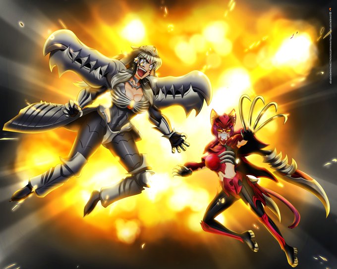 Halloween time means Halloween commissions Ana and Jocelyne as the Diamond and Ruby weapons! Art by @LeandroYep #FFXIV #Commissionsopen #Commissionedart #FFXIVART #Viera #Miqote
