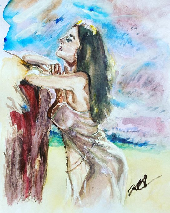 クリスマスの雰囲気…(その2) Christmas atmosphere… (part 2) #art #drawing #watercolor #profile #beauty #xmasatmosphere #アート #水彩画 #人物画 #美人 #クリスマスの雰囲気