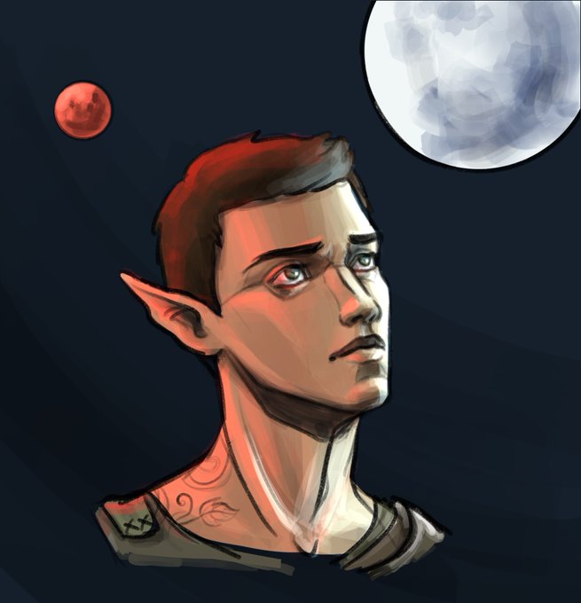 “Big moon, little moon” 💚 Here’s a quick sketch of Orym, I wanted to draw him a bit emotional looking at the big moon… for reasons. #criticalrolefanart #CriticalRoleCampaign3