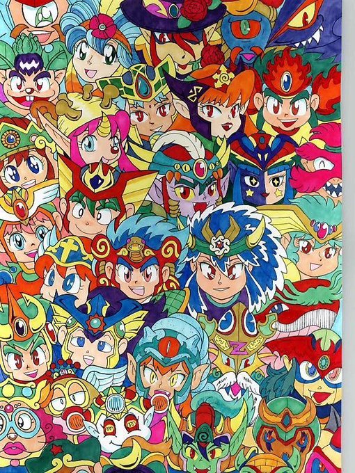 個人で描いてたビックリマンの最後の同人誌の裏表紙(何回も上げてるけど)アナログで描いたので二週間もかかった( ̄▽ ̄;)36弾発売おめでとうございます。あの時は32弾が最終弾だと信じていたよ。 #今までで作画カロリーMAXの作品上げようぜ #ビックリマン