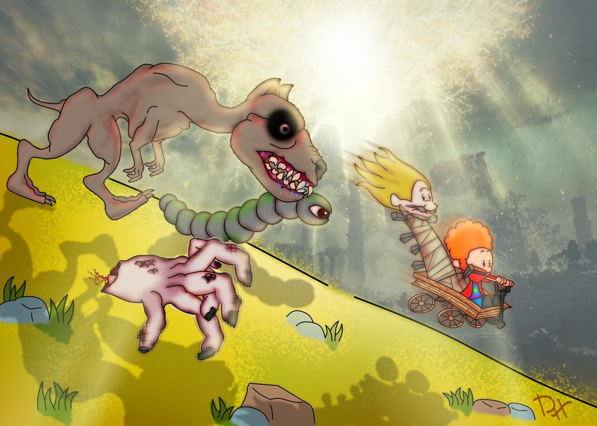 No comic this week but I'm currently working on a piece. Thanks to @JGeorgeDrawz introducing me to heroin (Elden Ring) I've began to dream about it. He's a tidbit of my next piece which was a dream I had a few days ago. #EldenRingFanart #CalvinandHobbes