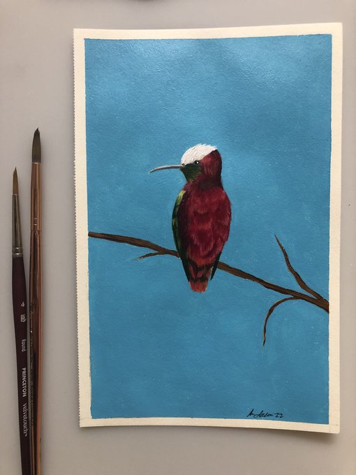 The barred parakeet for #AvianAugust2022 It’s quite difficult to paint through a migraine. At least I got it done, I guess.