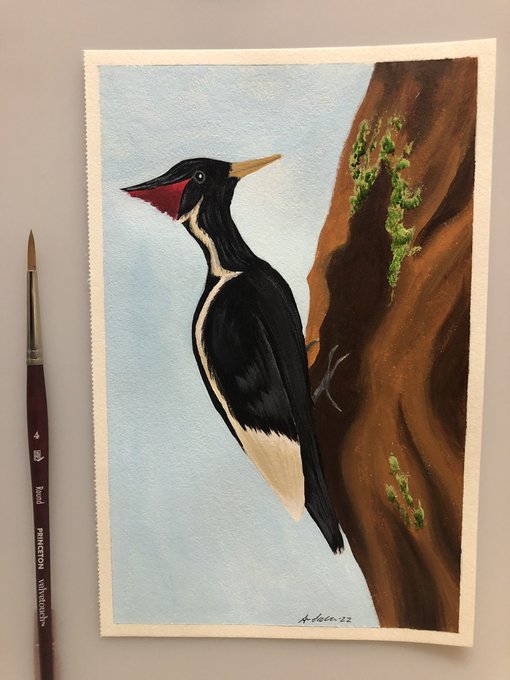 The ivory-billed woodpecker for #AvianAugust2022 Reference is my own, but of a pileated woodpecker.