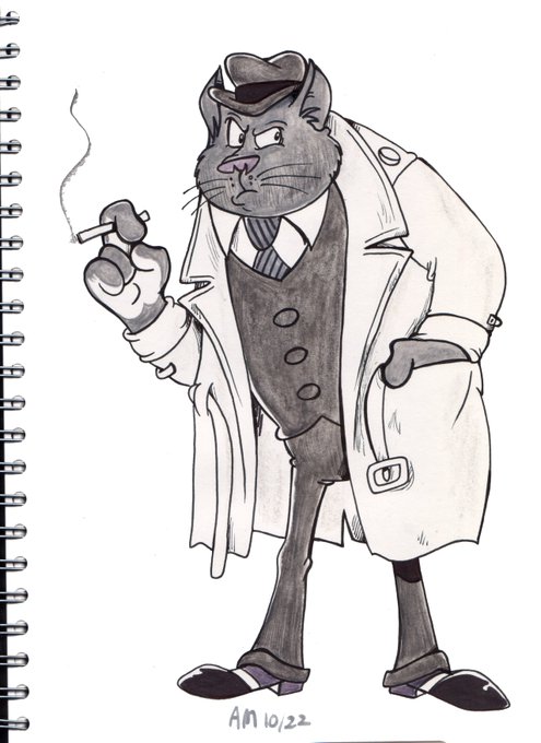 AstroCat's ancestor Lt. Horatio J Axelrod is to represent all grey for the #Inktober/#SoberOctober colour challenge. All the arts in this series are on sale, with half the proceeds going to charity, so DM me if interested.