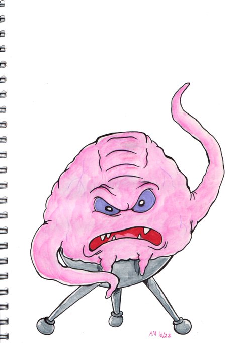 For #Inktober/#SoberOctober colour challenge here's Krang for another pink one. All the arts in this series are on sale, with half the proceeds going to charity, so DM me if interested.